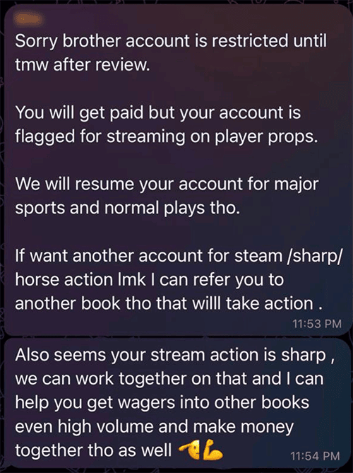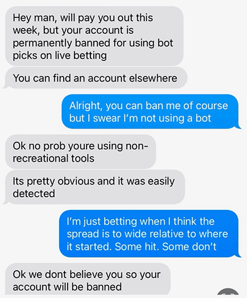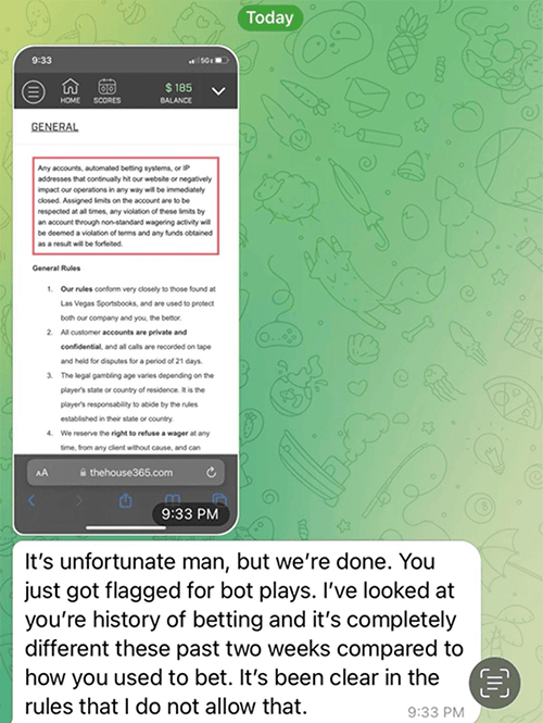 The downside to being sharp... We're "enemy of the state!" Bookies from coast to coast refuse to take our action.